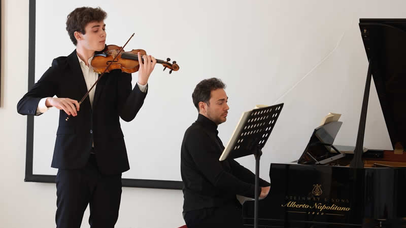 Andrea Cicalese e Massimo Spada nel “Salotto di Nevile Reid”. Ad applaudirli anche Beatrice Rana