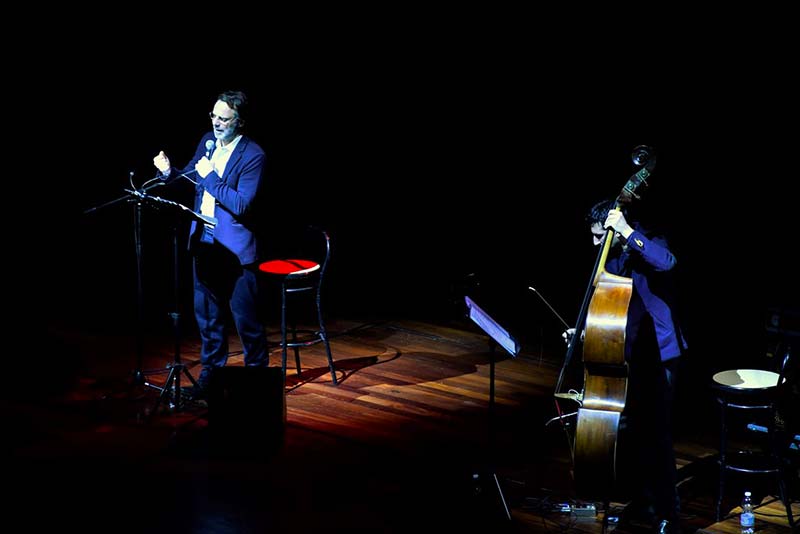 La Città della Musica ha accolto l’attore napoletano con una giornata tiepida e soleggiata, giusto coronamento del viaggio onirico attraverso l’Inferno, il Purgatorio e il Paradiso della Commedia. La pièce in prima assoluta, che si inserisce negli eventi invernali organizzati dalla Fondazione Ravello, ha calato alcuni dei versi più famosi dell’opera somma di Dante in un’atmosfera inedita e suggestiva creata dalla musica jazz. Alle composizioni di John Coltrane e di alcuni standard celeberrimi, si sono alteranti momenti di improvvisazione che hanno trasformato la sala dell’Auditorium Niemeyer in un luogo metafisico e surreale dove la Divina Commedia è divenuto altro.
