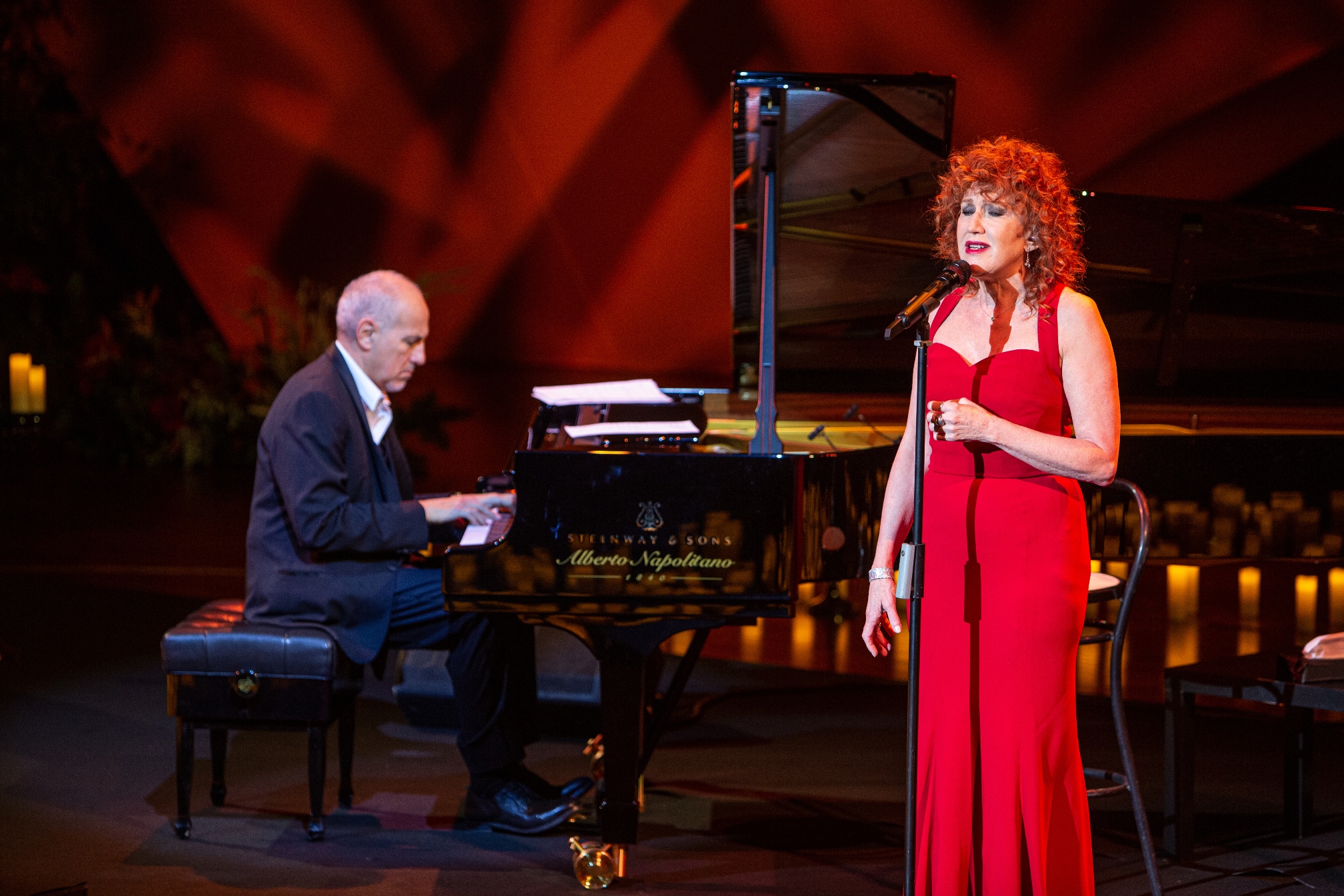 “Questo è un omaggio al Brasile, a Niemeyer che ha disegnato questo auditorium e a Pelè che ieri ci ha lasciati”. Sono state queste le parole di Fiorella Mannoia salendo sul palco per l’attesissimo concerto organizzato dalla Fondazione Ravello in occasione delle festività natalizie. È stata una serata di omaggi e ricordi quella che ha entusiasmato la platea della Città della Musica, gremita in ogni ordine di posto. Dopo un applauditissimo assolo al piano di Danilo Rea, la Mannoia ha voluto iniziare il concerto proprio con quel Oh che sarà di Chico Buarque, brano che negli anni ’90, inaugurò la fortunata collaborazione tra lei e il pianista vicentino. “Ci siamo resi conto di avere un’intesa incredibile – ha confermato Rea – e quando c’è fiducia e libertà tra due artisti sul palco si riesce a trasmettere appieno questa grande sinergia al pubblico”. Il perché di un progetto del genere è stato svelato dalla stessa Mannoia dopo l’interpretazione di Come si cambia e C’è tempo di Ivano Fossati: “Dopo anni di grandi spazi, di grandi produzioni, avevamo bisogno di intimità e di cantare le canzoni che avremmo sempre voluto cantare”. La scaletta, definita solo dopo le prove del pomeriggio, ha regalato al pubblico di Ravello un lungo viaggio emozionale nella musica del grande cantautorato italiano e non solo: da La Cura di Battiato a Quizas di Osvaldo Farrés, da Messico e nuvole e Via con me di Paolo Conte a E penso a te e Insieme di Battisti, passando per una struggente interpretazione di Sally di Vasco e di Sempre per sempre di De Gregori. Non potevano mancare alcuni dei brani più iconici della Mannoia come Che sia benedetta, Quelle che le donne non dicono e i Dubbi dell’Amore. Nei bis, ben 5, un sentito omaggio a Pino Daniele con Sulo pe’ parlà e Terra mia. “Non potevo andare via da questa terra senza un omaggio al mio amico Pino” le parole una Fiorella Mannoia in grande forma abbracciata da applausi calorosi a scena aperta e da una meritata standing ovation finale. (ph Vincent Ruocco, Raffaele Fierro)